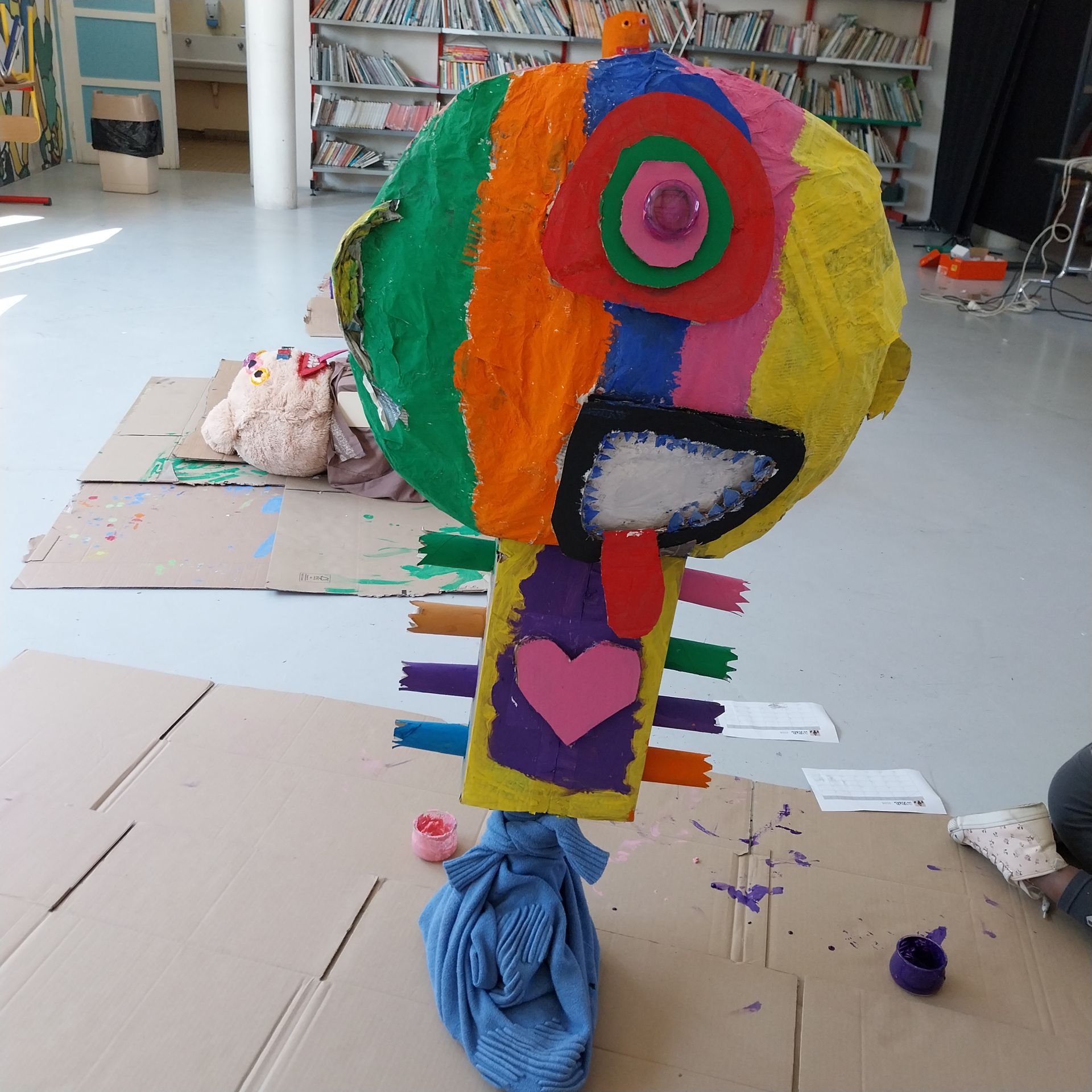 Petit retour sur un autre atelier mis en place avec l'école Bellonte de Méru où deux classes de CP et une classe de CE1 ont mis la main à la pâte dans la création de monstres imaginaires en carton à partir d'objets divers de récupération du 27 février jusqu'au 6 mai 2025. Les enfants participants ont pu explorer les matériaux ainsi que leurs idées de créatures rocambolesques tous les mardis pendant plus de 3 mois d'échanges, de conception et de réalisation hauts en couleur.