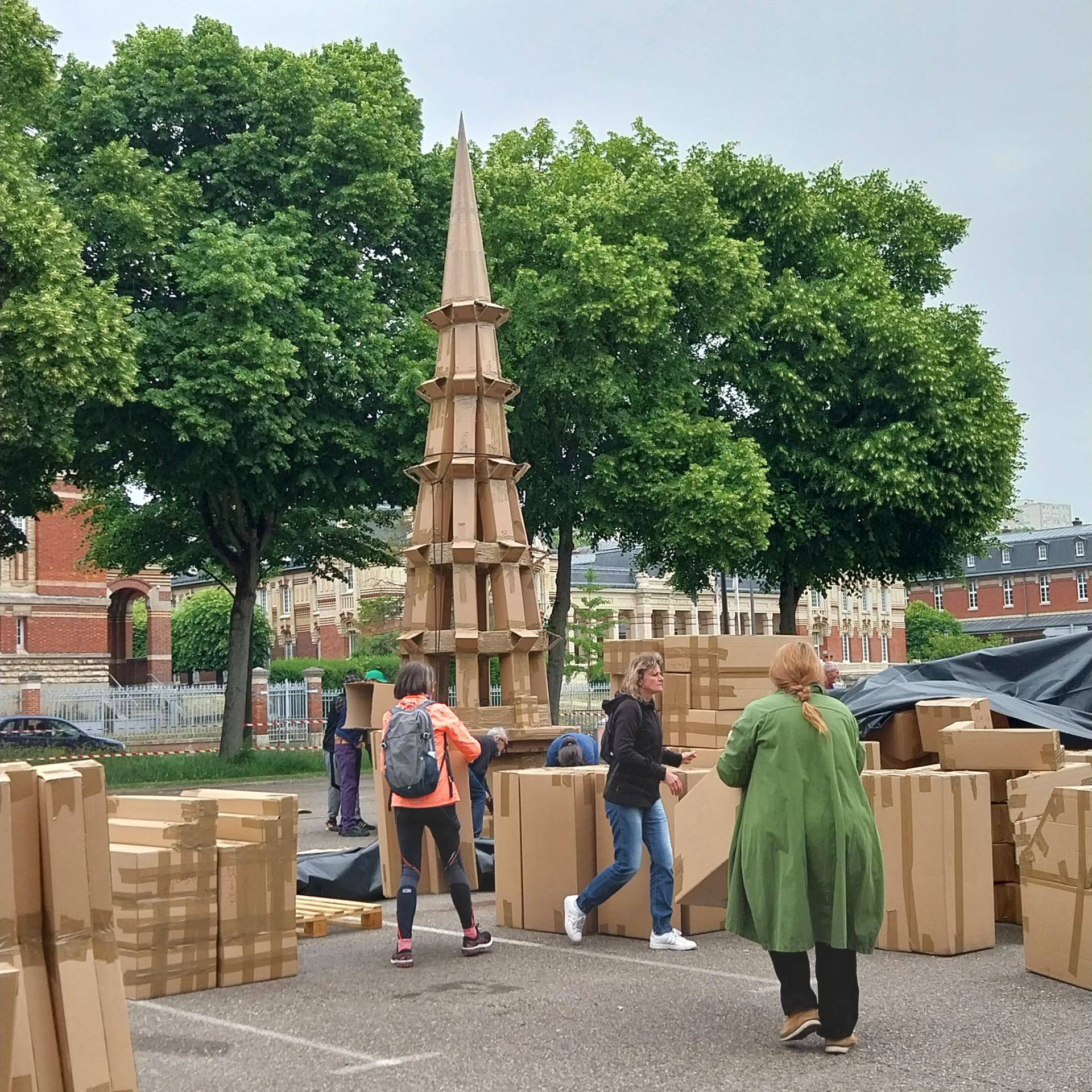 Voici en exclusivité les photos d'ateliers, de montage et de démontage avec la participation des Beauvaisien·ne·s de cette cathédrale en carton de 25m de haut !